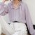 Elevate your wardrobe with this elegant purple chiffon blouse, a perfect fusion of French style and modern sophistication. Designed for women who love timeless fashion, this long-sleeved top features a delicate lotus leaf collar that exudes charm and femininity. Its lightweight chiffon fabric ensures you stay comfortable while looking effortlessly chic, making it an ideal choice for work, casual outings, or special occasions. Whether paired with tailored trousers or a flowing skirt, this blouse is a versatile addition to your closet.